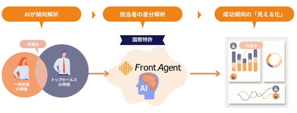 例えば、営業リーダーの方は非常に高い営業スキルを持ち、成約率も高いのですが、その方の話し方やワードチョイスと他の担当者との違いが可視化されるようになりました。この点は、 Front Agent 導入の大きなメリットだと感じています。