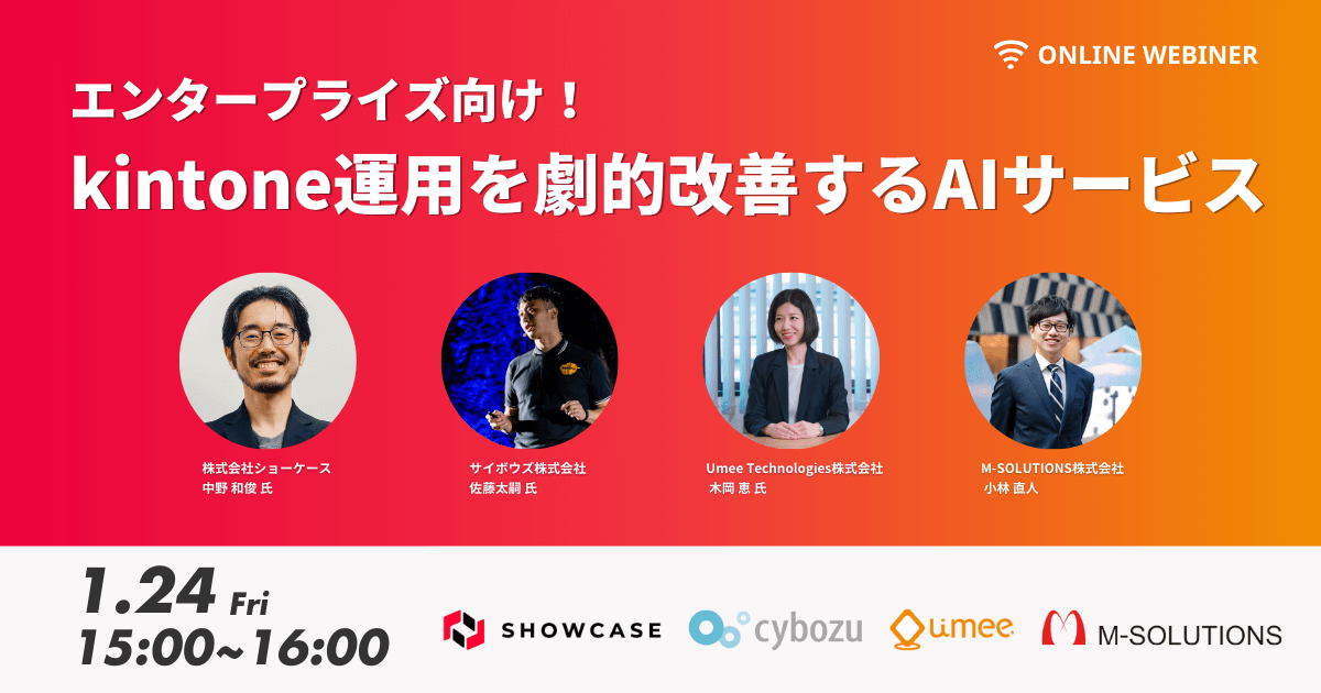 エンタープライズ向け【1/24(金)15:00】「kintone運用を劇的改善するAIサービス」を初開催! <オンライン無料>