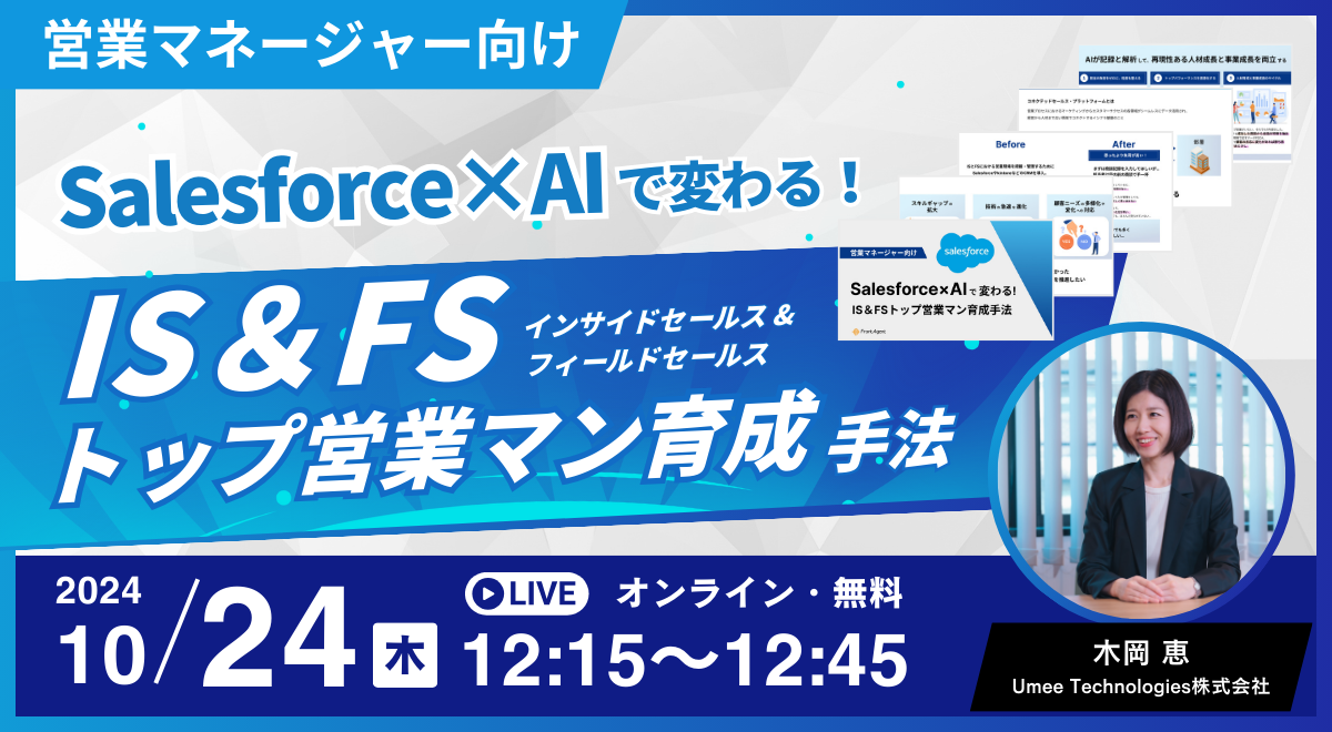 営業マネージャー向け【10/24開催|参加無料】 Salesforce×AIで変わるIS&FSトップ営業マン育成手法とは
