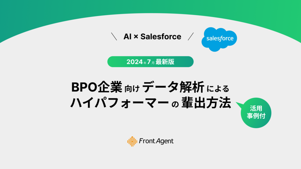 【AI × Salesforce】お役立ち資料 24年7月最新版:BPO企業向け データ解析によるハイパフォーマーの輩出方法 - 組織に進化をもたらす話術AI Front Agent