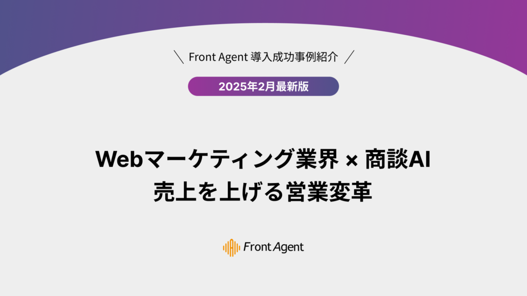 お役立ち資料 【100名限定】2025年2月最新版《Webマーケティング業界 × 商談AI》売上を上げる営業変革 「部下の商談に不安が残り、同席しなければ商談の状況が把握できない…」「限られた人員で営業も人材育成もしなければなら…」営業活動・顧客管理など限られたリソースのなかで、新規顧客獲得や営業人材育成など、WEBマーケティング業界の多くの会社における「共通するよくある課題」に対して、AI開発と提供を業務とする弊社が、商談AIによるデータ活用を推進し、営業プロセスを可視化、さらにそのデータを解析し人材育成の強化に活用した事例をもとにまとめたハンドブック「【Webマーケティング業界 × 商談AI】売上を上げる営業変革」を公開しました。 【課題】全ての商談に上司が同席せざるを得ない【解決策】AIが音声から心理分析。お客様の共感点を商談に活かすミーティング時の会話の話者毎の文字起こしから、顧客に良い反応が得られた重要な会話を具体的に可視化成功した商談からテキストだけでアシストAIを作り、成約しやすい会話をチーム全員に即座に展開して、組織的に売上を上げる 必須 会社名 必須 氏名 必須 ふりがな 必須 電話番号 必須 メールアドレス 必須 職種 営業マーケティングカスタマーサクセスカスタマーサポート人事経営企画会社役員 必須 役職 経営者・役員クラス事業部長・部長クラス課長クラス係長・主任クラス人事一般社員・職員その他 必須 従業員数 1名以上 - 15名以下16名以上 - 30名以下31名以上 - 50名以下51名以上 - 100名以下101名以上 - 500名以下501名以上 - 1000名以下1001名以上 必須 現在の営業やカスタマーサポートに関する関心・注力度合いを教えてください。 強い課題を感じる今後注力していきたい情報収集をしている段階特に課題・関心はない 必須 現在の顧客管理の方法 キントーンsalesforceHubspotZoho CRMエクセルその他 必須 利用しているカレンダー OutlookGoogleガルーンその他 必須 利用しているビジネスSNS SlackTeamsチャットワークラインワークスその他 必須 同意の確認 プライバシーポリシーに同意する Δ